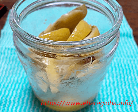 ちょと水分の少ないレモンだったのか、表面が乾き気味でしたけれど、瓶の底にはゼリーのようになった水分も溜まっています。